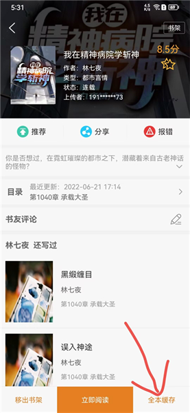 3、点击下方的全本缓存,即可下载到本地。